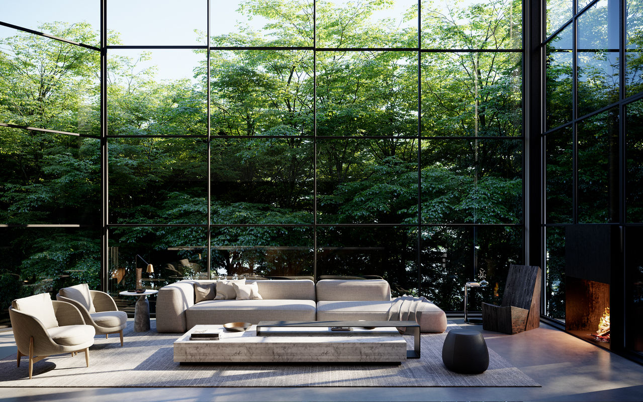 Located at 36 Crestwood Drive in Barrie, Ontario, this contemporary residence was developed in partnership with JORG and is defined by a strong connection to its natural surroundings. A double-height living space establishes a sense of openness and verticality, while expansive glazing frames views of the landscape throughout the home—from the living room and master suite to the home office, dressing areas, and bathrooms. The architecture blurs the boundary between interior and exterior, creating a quiet, immersive living environment that feels both refined and deeply rooted in its wooded setting.